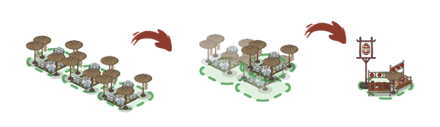 从一块荒地起步,玩家将建立基本的生产设施,通过与小镇的贸易,逐步扩大村庄规模,打造一个繁荣富足的理想家园。茶叶和桃花酿是村庄的特产,玩家需要合理利用这些资源,通过交易置换,获取更多类型的建筑,来提升村庄繁荣度。