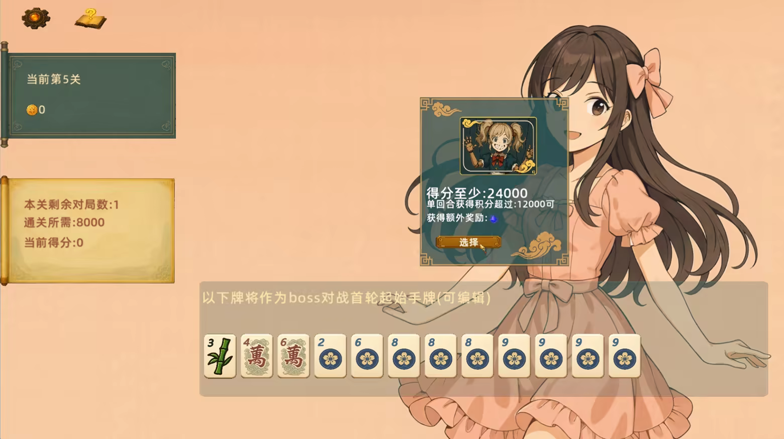 《灵能麻将》是一款结合Roguelike与策略玩法的单人麻将游戏。你将带领灵能牌组不断挑战对手,购买灵牌具、升级牌型,构筑属于你的麻将之路!