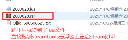 (现在的清单文件只有lua并且提供直链下载点击清单入库即可下载压缩包自行解压后拖拽到工具上重启steam即可)