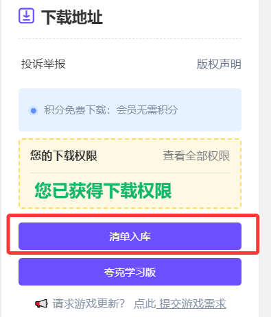 由于特殊原因 不能注册网盘会员 清单入库 解决了我不能下载游戏的 困境 👍 希望 能把之前 不支持 清单入库的 游戏 补充一下清单文件😍